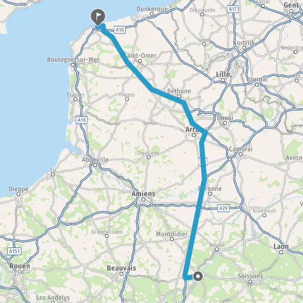 Prendre à gauche et rejoindre A26 E15. Continuer sur 105 kilomètres