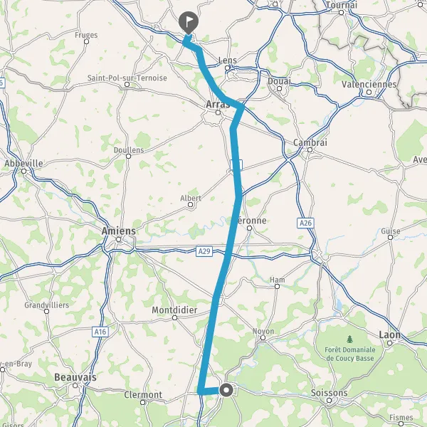 Prendre à gauche et rejoindre A26 E15. Continuer sur 33 kilomètres