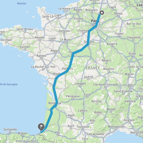 Continuer E5 (L'Aquitaine) sur 516 kilomètres