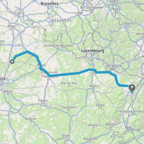 Prendre à droite et rejoindre A26 E17. Continuer sur 70 kilomètres