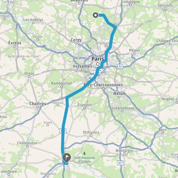 Prendre à droite et rejoindre A10. Continuer sur 34 kilomètres