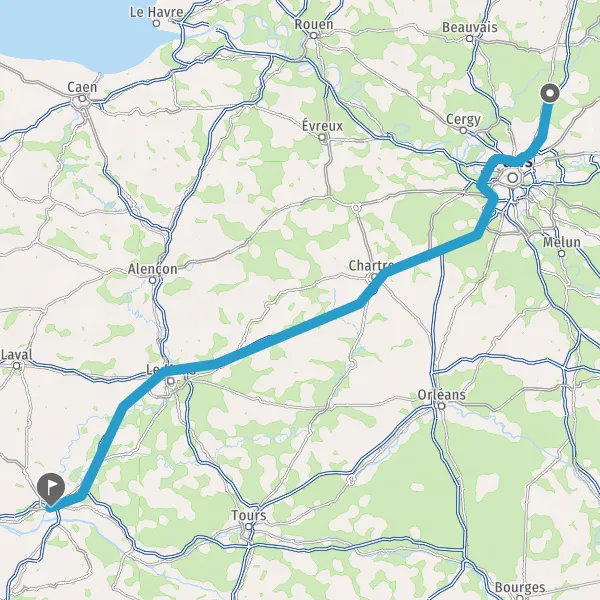 Prendre à droite et rejoindre A11 E50. Continuer sur 147 kilomètres