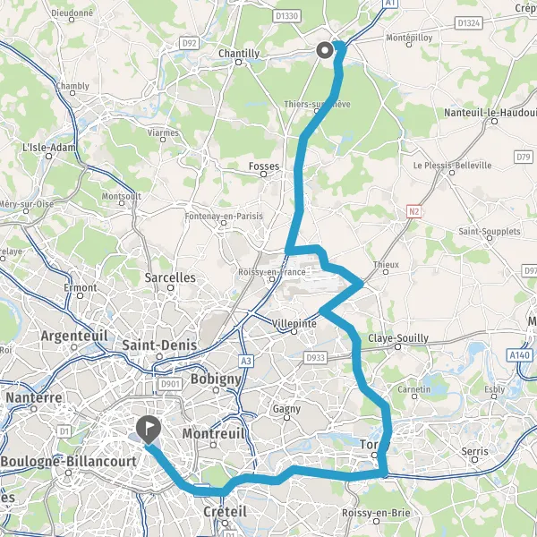| Distance en voiture | 44,1 km à 56 km |