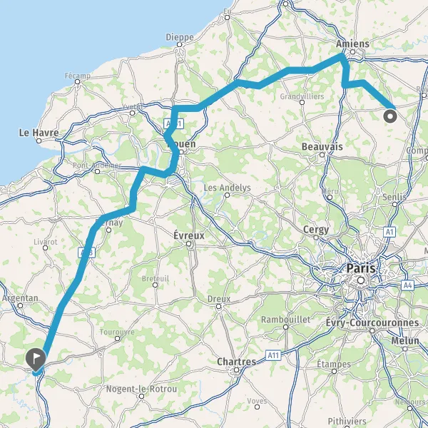 Prendre à droite et rejoindre A28 E402. Continuer sur 125 kilomètres