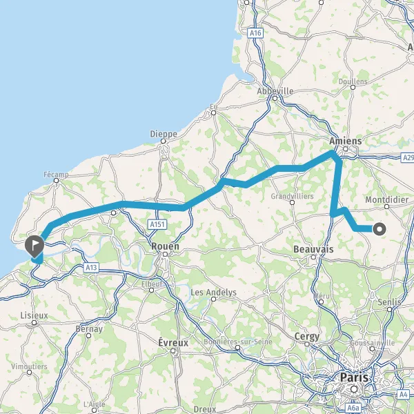 Prendre à droite et rejoindre A29. Continuer sur 38 kilomètres