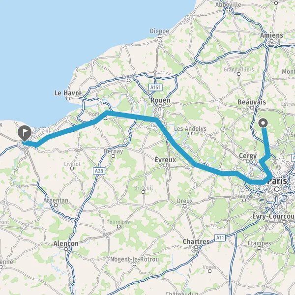Prendre à gauche et rejoindre A13 E5. Continuer sur 103 kilomètres