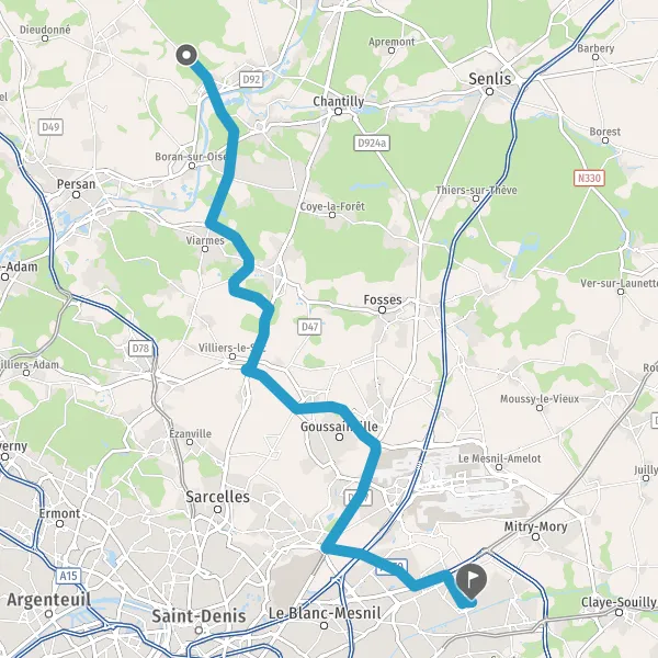 Tourner à droite sur D909 (Avenue de Viarmes) et continuer sur 2,8 kilomètres