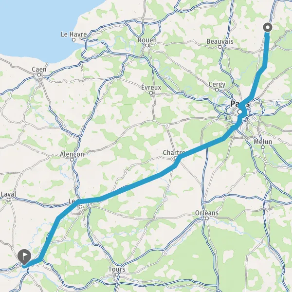 Prendre à droite et rejoindre A11 E50. Continuer sur 147 kilomètres