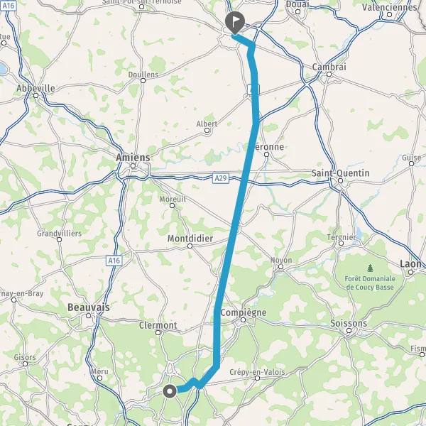 Tourner à droite sur A1 A1 E15 E19 et continuer sur 93 kilomètres