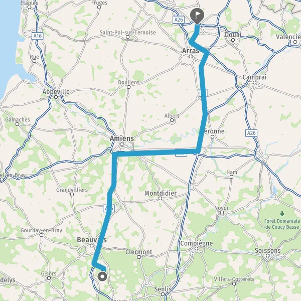 Prendre à droite et rejoindre A16 E46. Continuer sur 52 kilomètres
