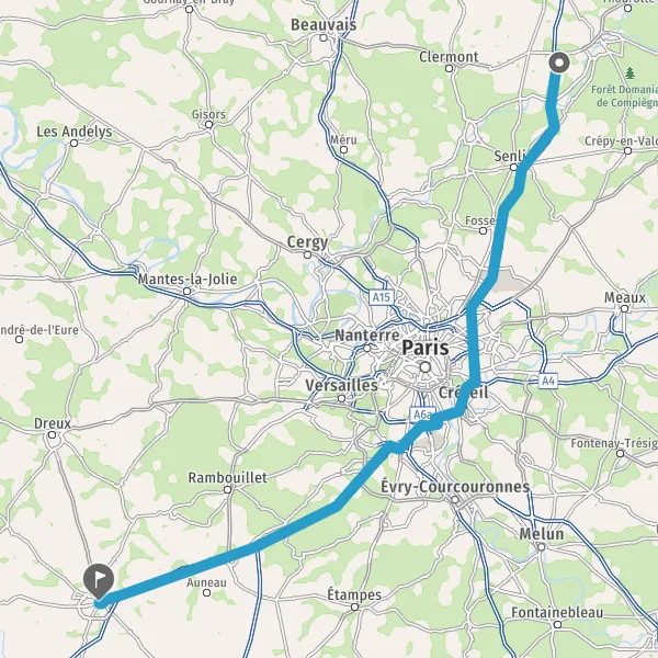 Prendre à droite et rejoindre A10. Continuer sur 34 kilomètres