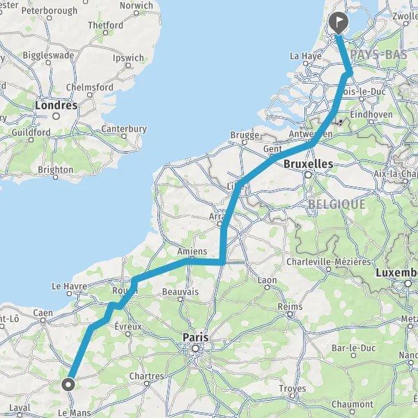 Prendre à droite et rejoindre A28 E402. Continuer sur 125 kilomètres