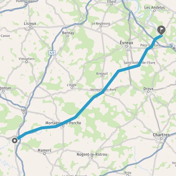 Prendre à droite et rejoindre A28 E402. Continuer sur 125 kilomètres