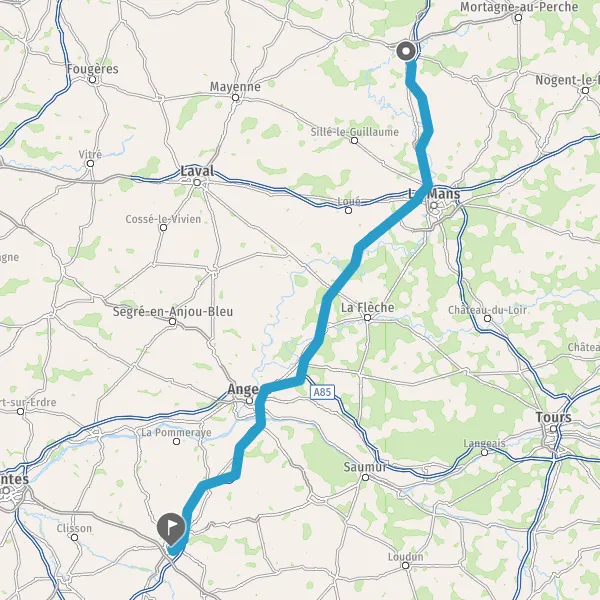 Continuer et rejoindre A87. Continuer sur 60 kilomètres