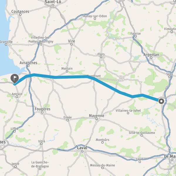 Tourner à droite sur D907 (Rue de Mortain) et continuer sur 4,6 kilomètres