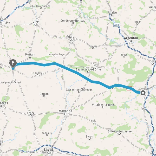 Tourner à droite sur D907 (Rue de Mortain) et continuer sur 4,6 kilomètres