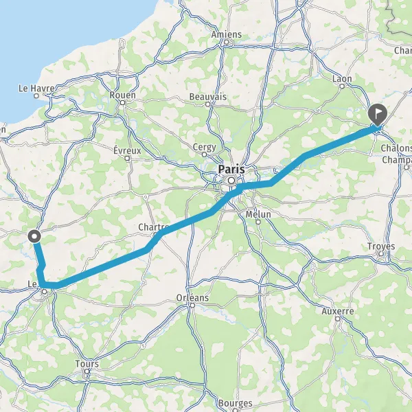 Continuer A10 E5 E50 sur 23 kilomètres