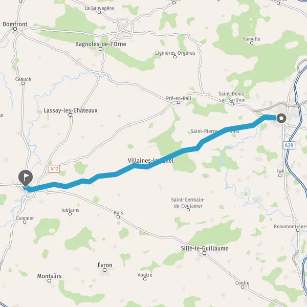 Tourner à gauche sur D1 (Rue des Alpes Mancelles) et continuer sur 2,4 kilomètres