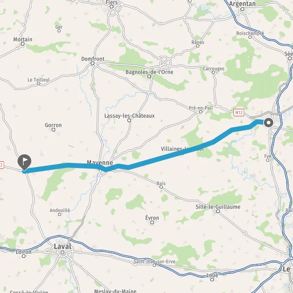 Au rond-point, prendre la 2ème sortie sur N12 (Route d'Ernée) et continuer sur 850 mètres
