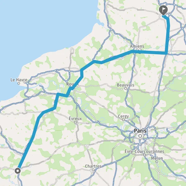 Prendre à droite et rejoindre A28 E402. Continuer sur 125 kilomètres