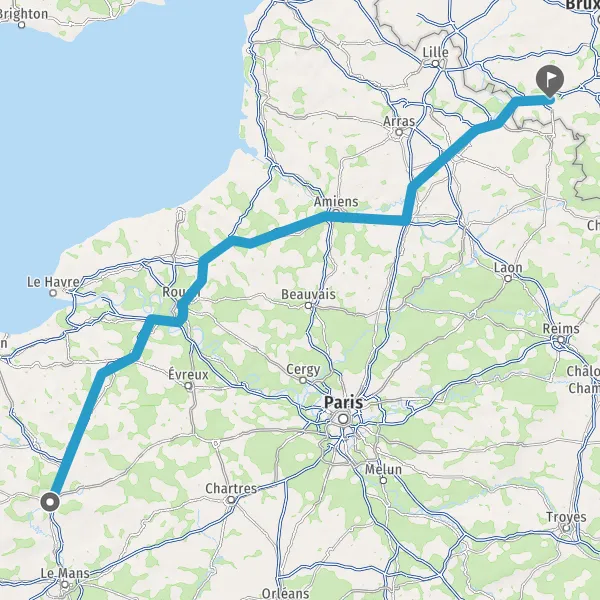 Prendre à droite et rejoindre A28 E402. Continuer sur 125 kilomètres