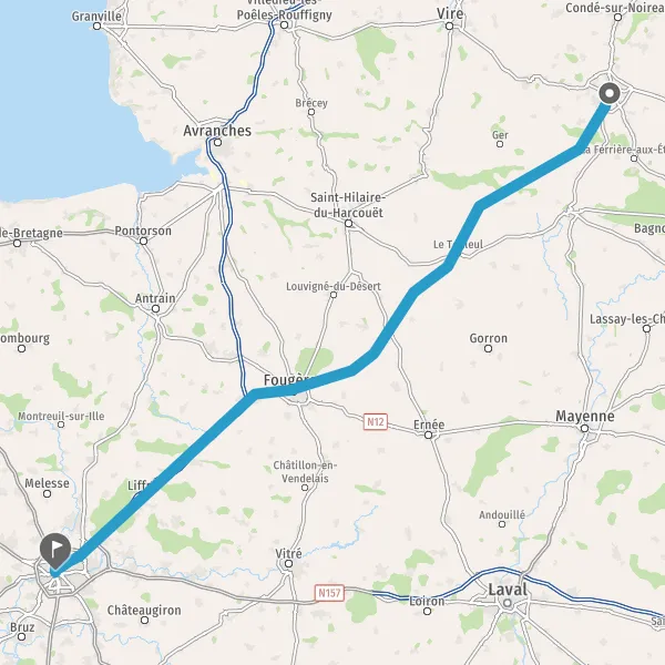 Prendre à droite et rejoindre N12 (Route de Fougères). Continuer sur 2,3 kilomètres