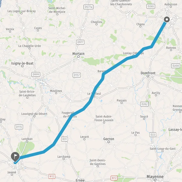 Continuer D806 (Route de Gorron) sur 60 mètres