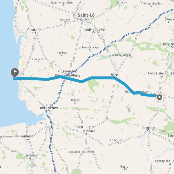 Tourner légèrement à droite sur D524 (Rue de Vire) et continuer sur 13 kilomètres