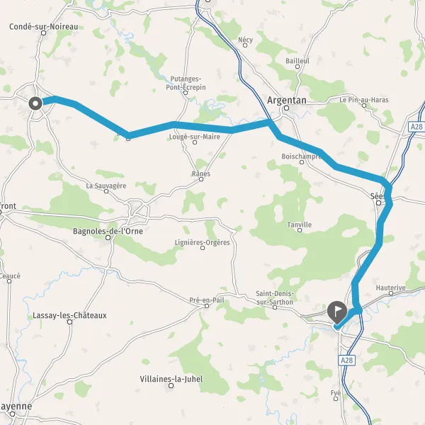 Prendre à droite et rejoindre A28. Continuer sur 22 kilomètres