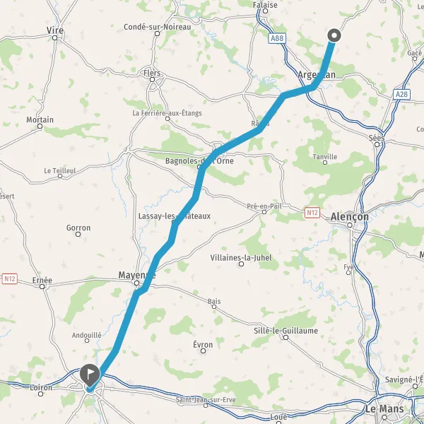 Au rond-point, prendre la 2ème sortie sur Route de Mayenne et continuer sur 650 mètres