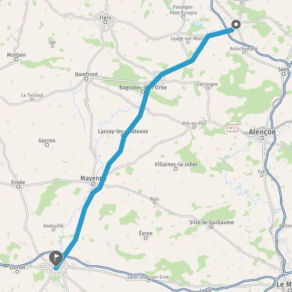 Au rond-point, prendre la 2ème sortie sur Route de Mayenne et continuer sur 650 mètres