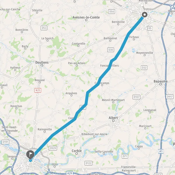 Au rond-point, prendre la 1ère sortie sur D3 (Chemin d'Acheux à Arras) et continuer sur 1,1 kilomètre