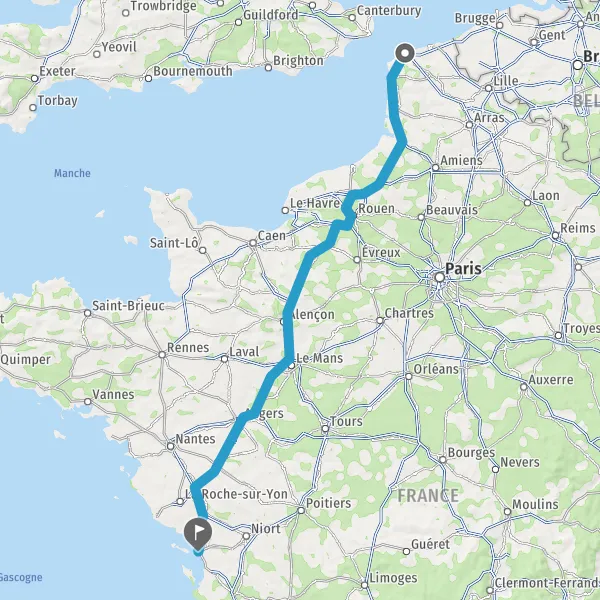 Continuer E501 (L'Océane) sur 84 kilomètres