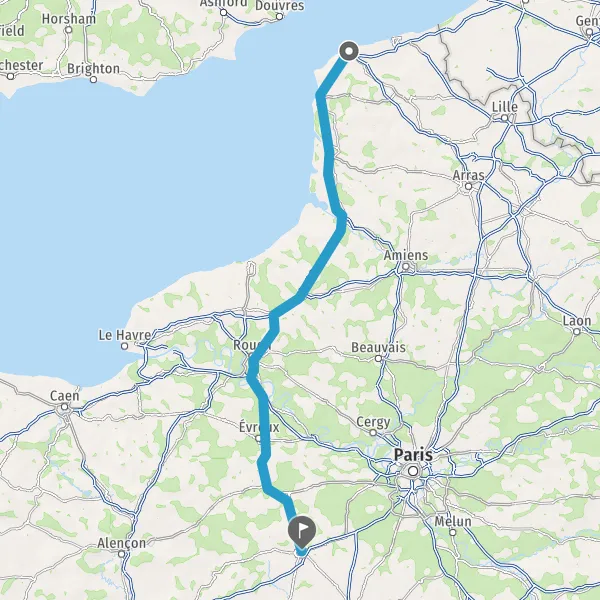 Prendre à droite et rejoindre A154. Continuer sur 28 kilomètres