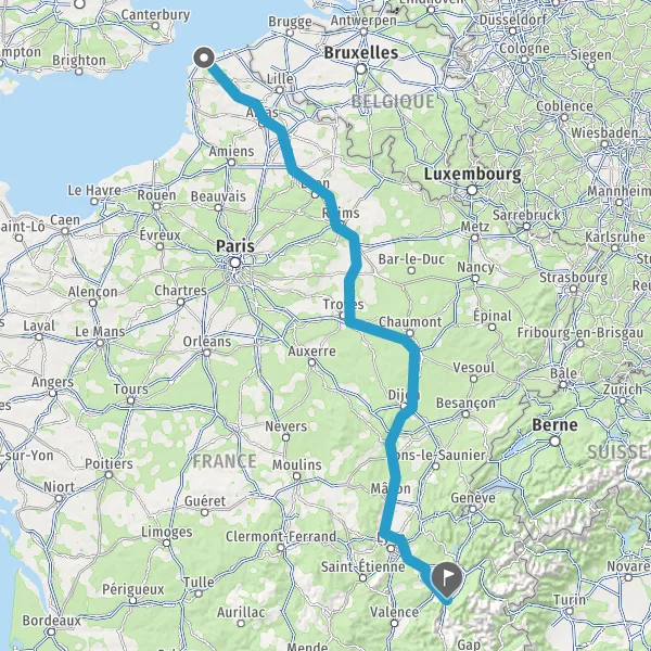 Prendre à droite et rejoindre A26 E15. Continuer sur 263 kilomètres