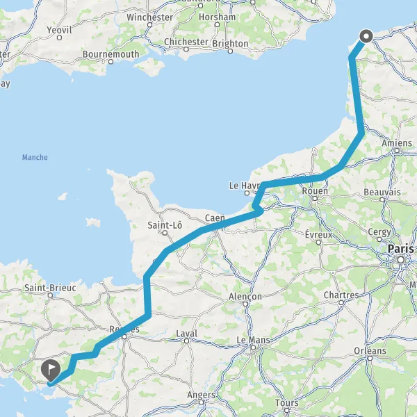 Prendre à droite et rejoindre A84 E401. Continuer sur 165 kilomètres