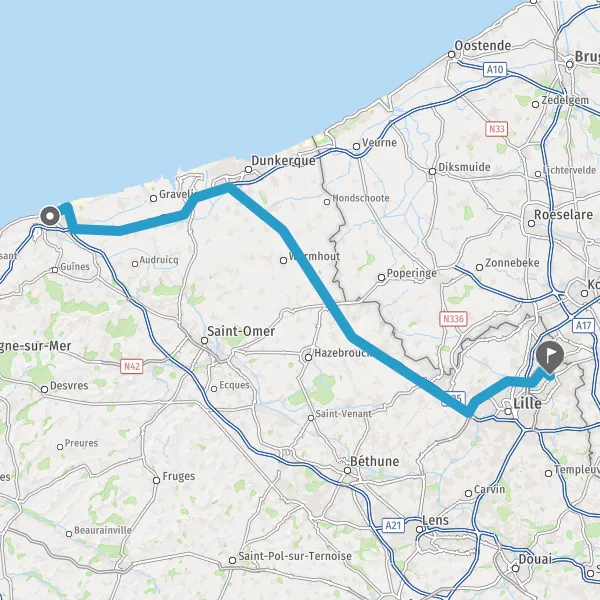 Prendre à gauche et rejoindre A16 E40. Continuer sur 32 kilomètres