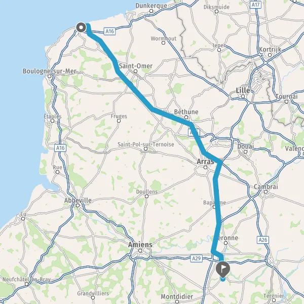Prendre à droite et rejoindre A26 E15. Continuer sur 104 kilomètres