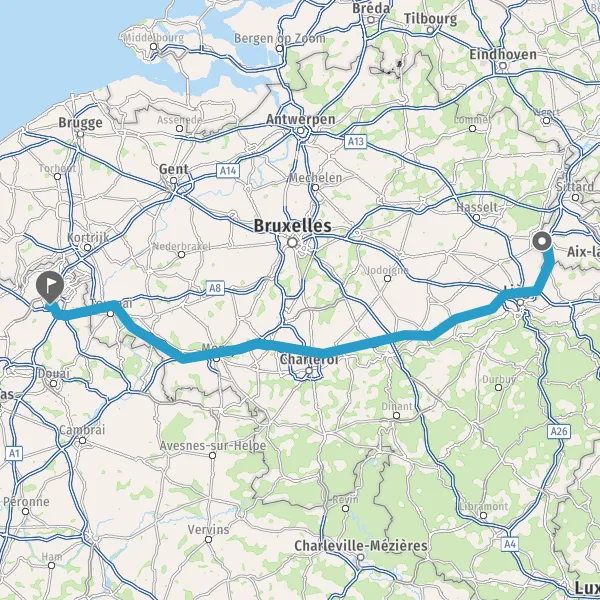 Prendre à droite et rejoindre A1 A1 E42. Continuer sur 2,5 kilomètres