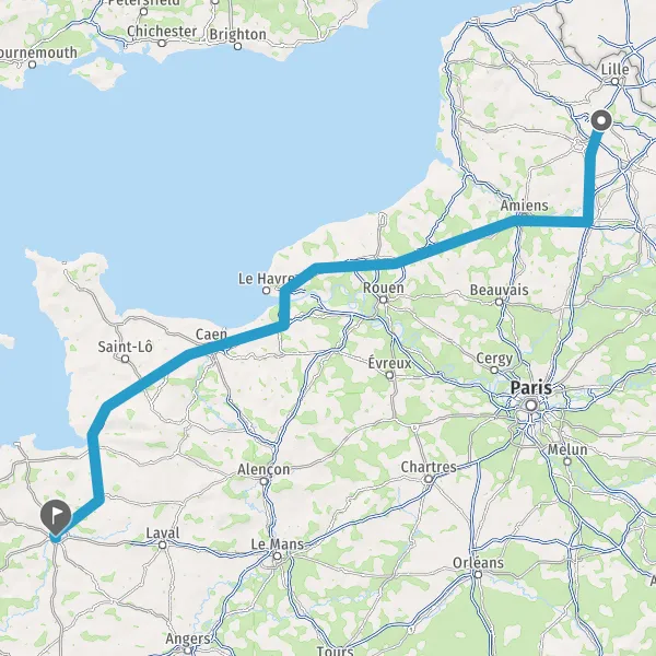 Prendre à droite et rejoindre A84 E401. Continuer sur 165 kilomètres