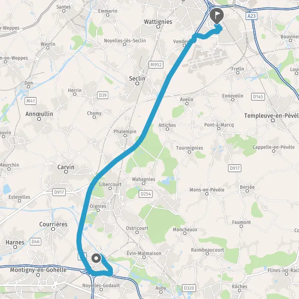 | Distance en voiture | 23,5 km à 26,1 km |