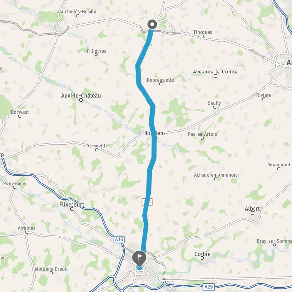 Au rond-point, prendre la 2ème sortie sur D916 (Rue de Doullens) et continuer sur 13 kilomètres
