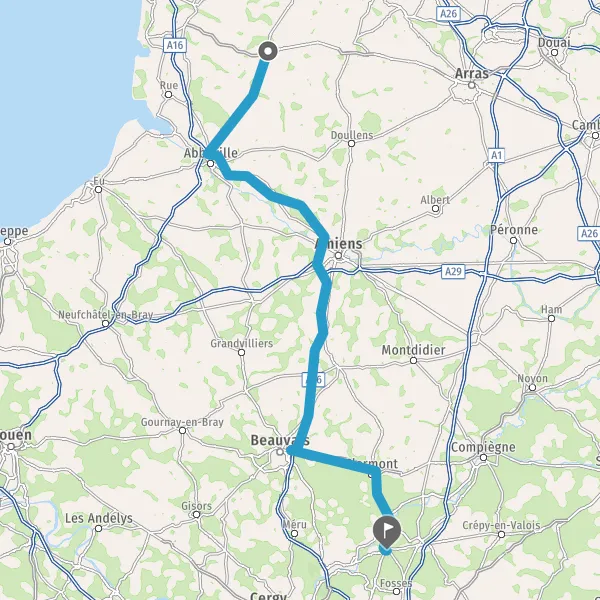 Sortir et rejoindre D1016. Continuer sur 18 kilomètres