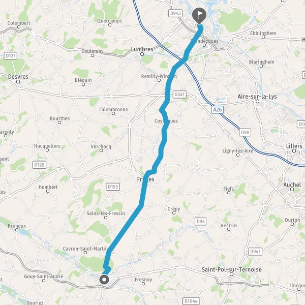 Au rond-point, prendre la 2ème sortie sur D928 (Route de Saint-Omer) et continuer sur 2,7 kilomètres