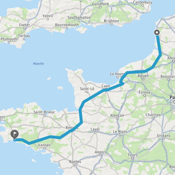 Prendre à droite et rejoindre A84 E401. Continuer sur 165 kilomètres