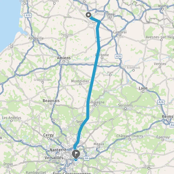 Prendre à droite et rejoindre A26. Continuer sur 950 mètres