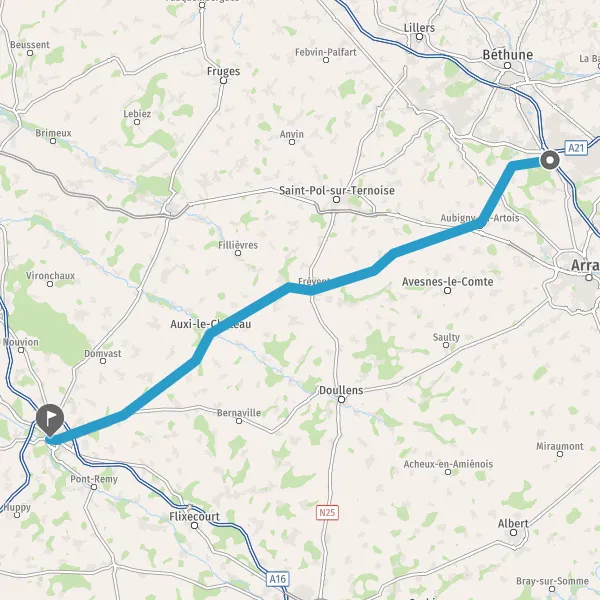 Tourner légèrement à droite sur D925 (Rue de Doullens) et continuer sur 7,2 kilomètres