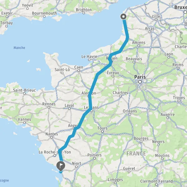 Continuer E501 (L'Océane) sur 84 kilomètres