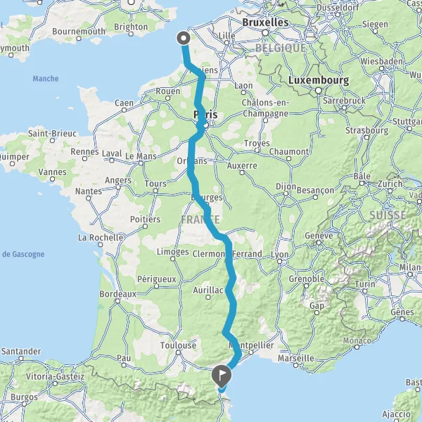 Prendre à droite et rejoindre A16 E402. Continuer sur 216 kilomètres