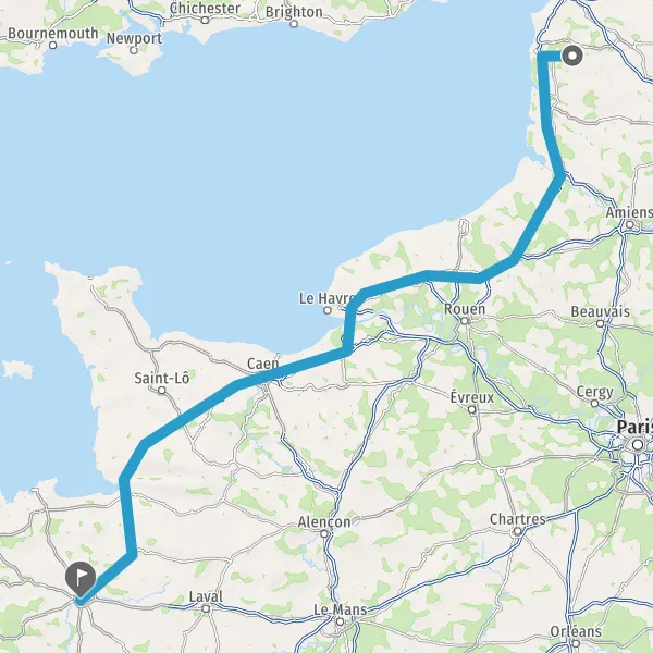 Prendre à droite et rejoindre A84 E401. Continuer sur 165 kilomètres